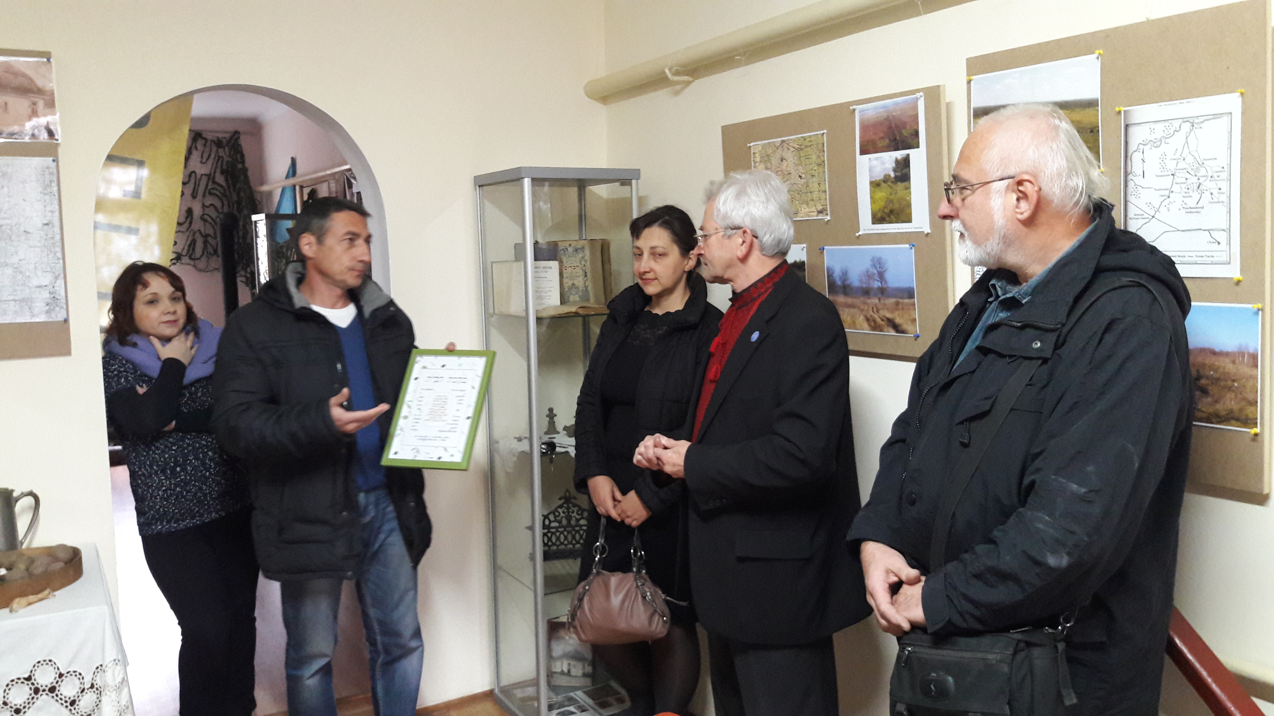 Director of the Kivertsy Museum of Local History S.Voichik. Then we had previously agreed by the 75-th anniversary of tragic events of the destruction of the Jewish shtetl (small town) Trokhimbrod (Sofievka) to organize and hold an exhibition about the history of this town. From the funds of our community to the museum for the exhibition were given materials and artifacts found in the territory of the former town.