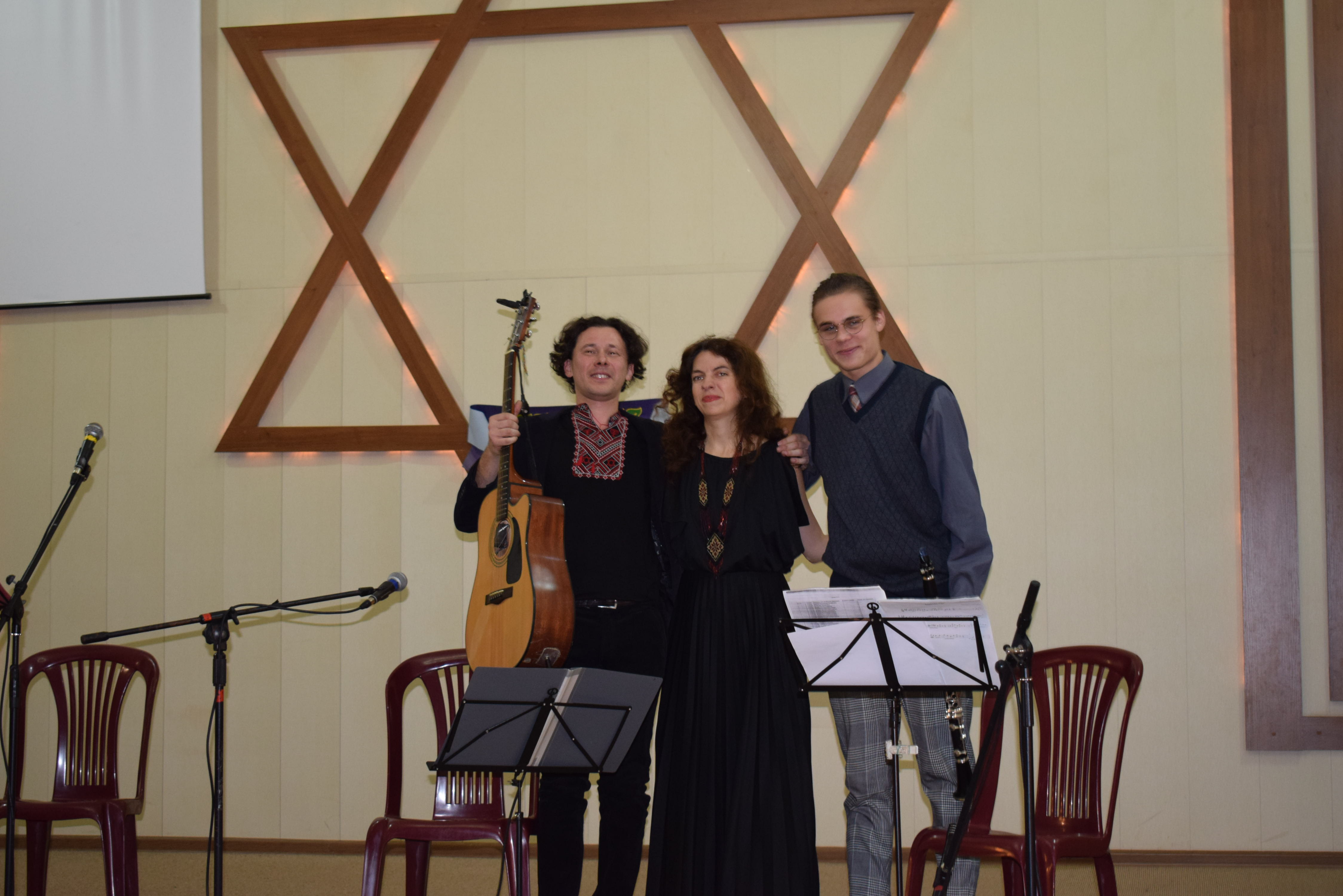 В этот день в стенах нашей общины состоялся замечательный концерт – новой программой «Изюминки с миндалем» нас порадовали замечательные исполнители – дует «Анахну» (ВЕБФ «Хесед-Арье» г.Львов). Песни плавно переходили одна в другую, перемеживаясь с прекрасными, ироничными, тонкими комментариями Саши Сомеш. Песни о тяжелой доле, несчастной любви - драматические, лирические и юмористические, сменялись застольными, где за безудержным весельем, подчас скрывается печаль. Особой фишкой этого концерта стало участие в нем молодого, но очень талантливого кларнетиста Леонида Дробченко, который привнес ту самую «изюминку» в выступление артистов. Спасибо, дорогие Саша, Алексей и Леонид за подаренные емоции, за прекрасный подарок – возможность прикоснуться к еврейской песне, за задетые душевные струны! Желаем коллективу новых творческих успехов и ждем новых концертов и новых выступлений!