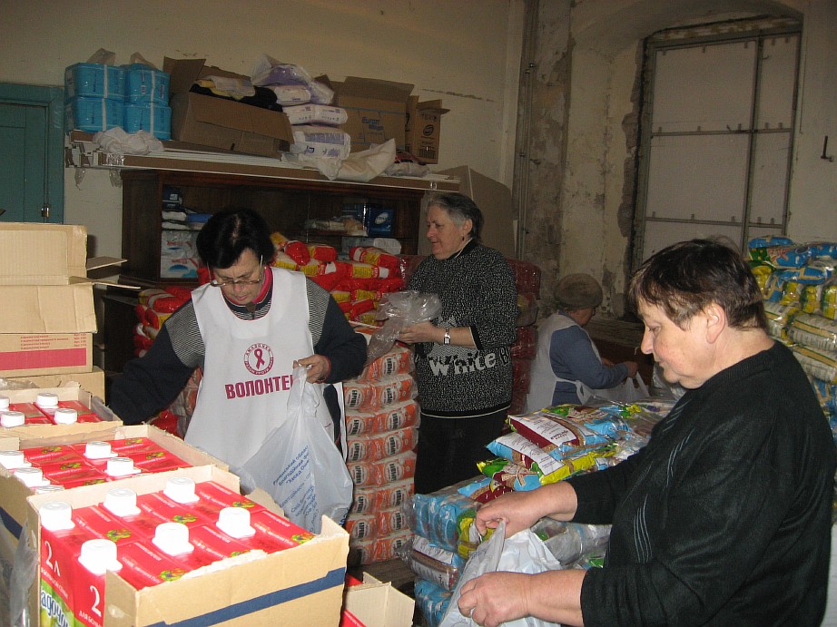 Щомісяця нужденним членам громади, а також членам їх сімей видаються продуктові набори