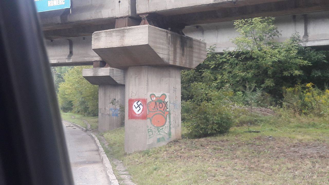 Сьогодні вся Україна святкує досить молоде свято - День Державного Прапора. У нашому місті всі заходи, присвячені цьому дню, проходять святково і красиво. Багато красиво одягнених людей, прапорів різних країн, музика... А в цей час, в нашому ж місті, можна побачити ось такий прапор. Що це? Символ чого? Напевно, можновладцям варто задуматися, що бачать іноземні делегації та гості нашого міста!!! (P.S. на фото - опора залізно-дорожнього мосту на вул. Дубнівській).