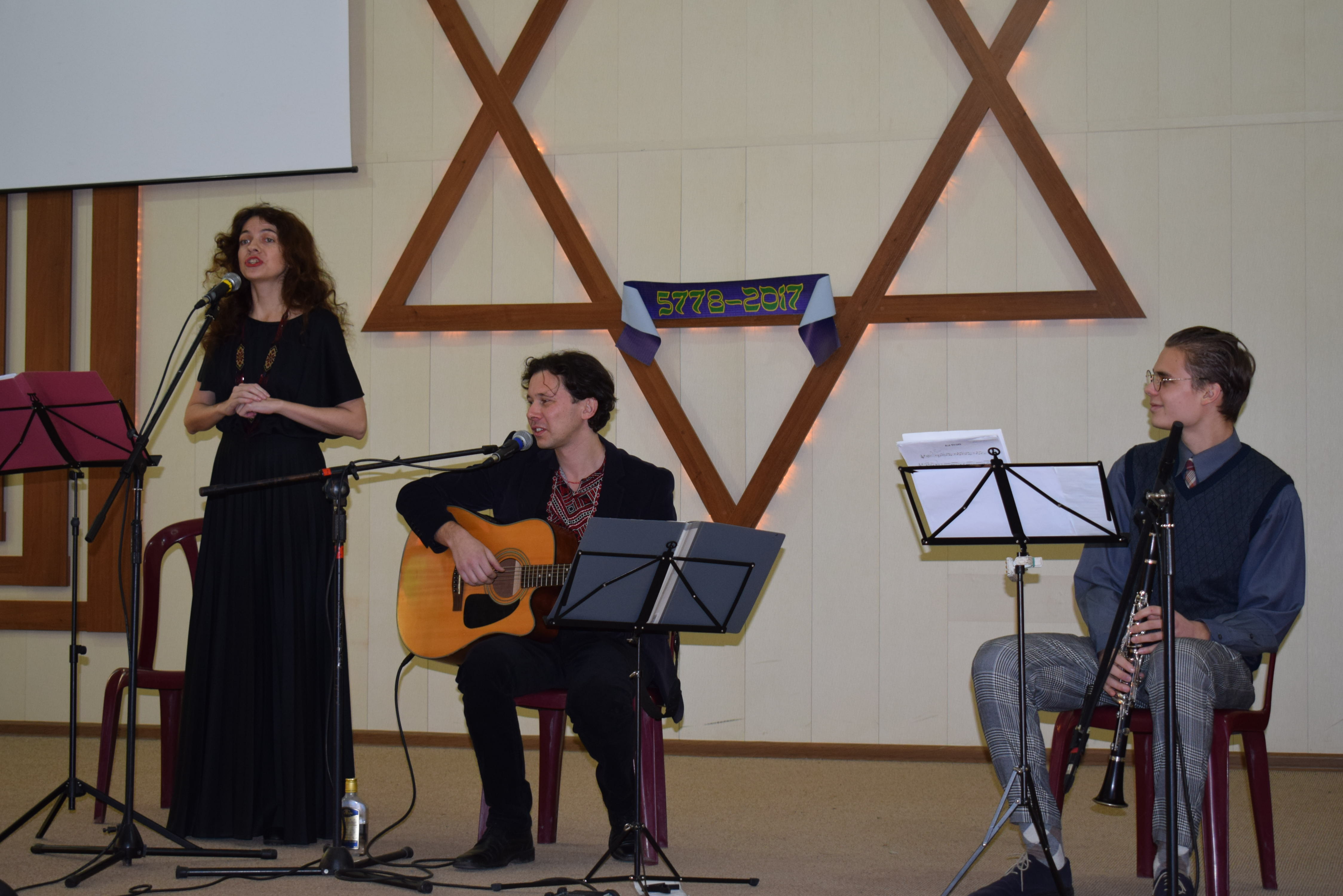В цей день в стінах нашої громади відбувся чудовий концерт - новою програмою «Родзинки з мигдалем» нас порадували чудові виконавці - дует «Анахну» (ВЄБФ «Хесед-Ар'є» м.Львів). Пісні плавно переходили одна в іншу, перемежуючись з прекрасними, іронічними, тонкими коментарями Саші Соміш. Пісні про важку долю, нещасливе кохання - драматичні, ліричні і гумористичні, змінювалися застільними, де за нестримними веселощами, часом ховається печаль. Особливою фішкою цього концерту стала участь в ньому молодого, але дуже талановитого кларнетиста Леоніда Дробченко, який привніс ту саму «родзинку» в виступ артистів. Спасибі, дорогі Саша, Олексій і Леонід за подаровані емоції, за прекрасний подарунок - можливість доторкнутися до єврейської пісні, за зачеплені душевні струни! Бажаємо колективу нових творчих успіхів і чекаємо нових концертів і нових виступів!