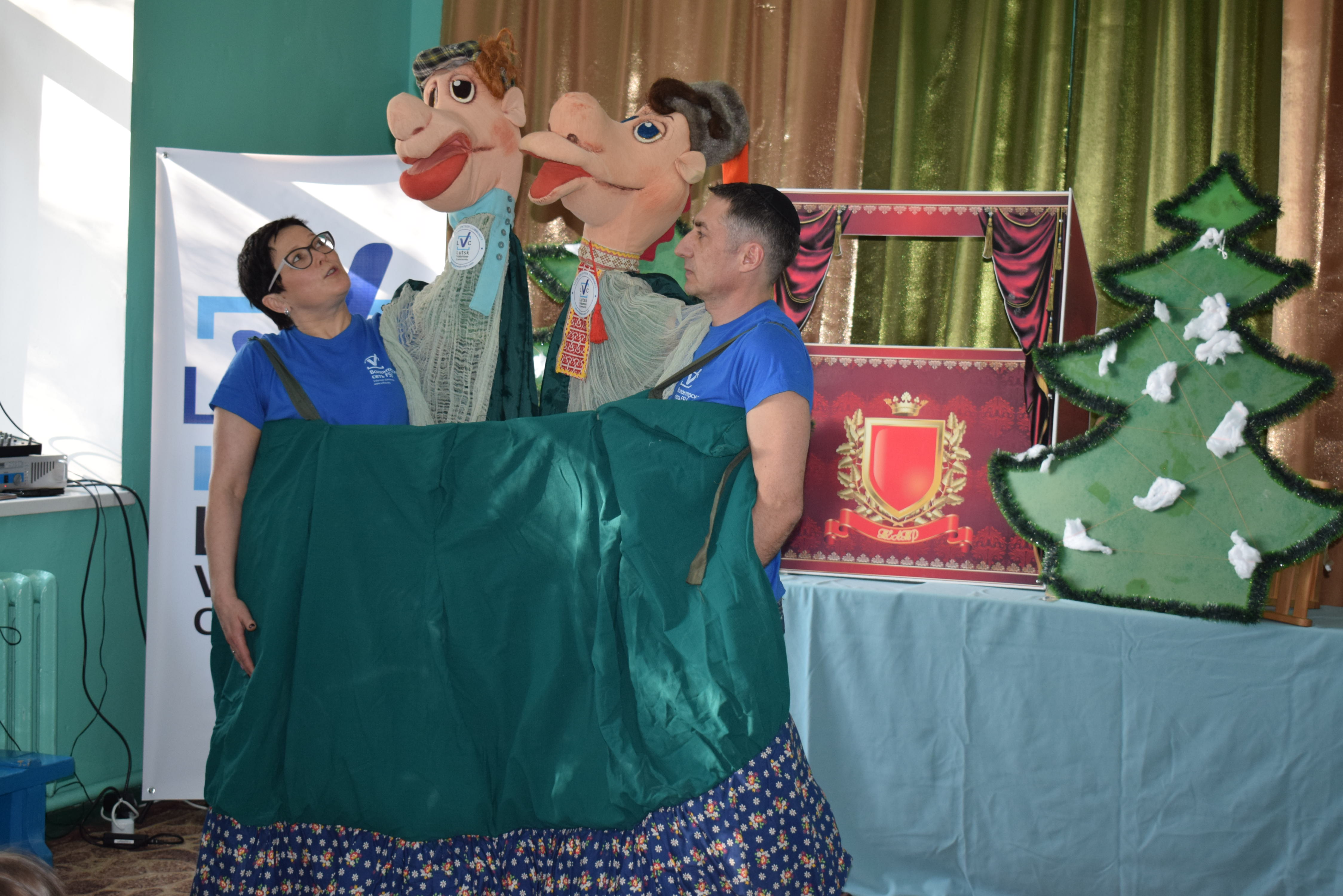 Ми вирішили, в цей раз, зробити дітям з навчально-реабілітаційного центру для дітей з порушенням опорно-рухового апарату в м. Рожище зустріч з театром. «Треба! Значить - зробимо!!!» - ось таким девізом почалася підготовка до чергового етапу даного проекту. Волонтери підготували програму, приготували невелику лялькову постанову, пошили костюми лялькам. Після вистави, кожна дитина могла відчути себе в ролі ляльковода й автора казок. Крім цього, на плакаті «Земля наш спільний дім!», ми заселили нашу красиву планету ляльками з іменами дітей, які вони робили самі, а наша зустріч завершилася веселими та запальними танцями.